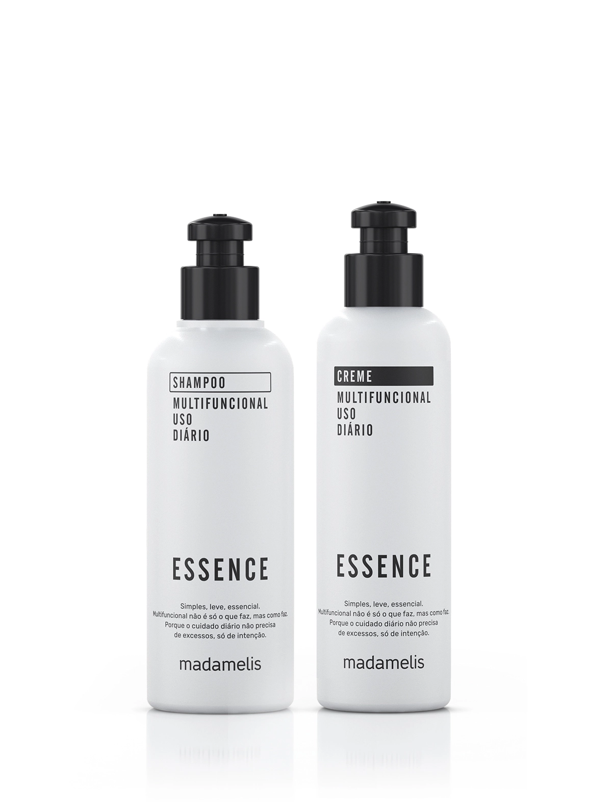 A Linha Essence foi criada para simplificar a rotina de cuidados capilares com performance e praticidade. Composta por shampoo (250ml) e creme multifuncional (200ml), entrega hidratação, nutrição e proteção em fórmulas leves e eficazes.