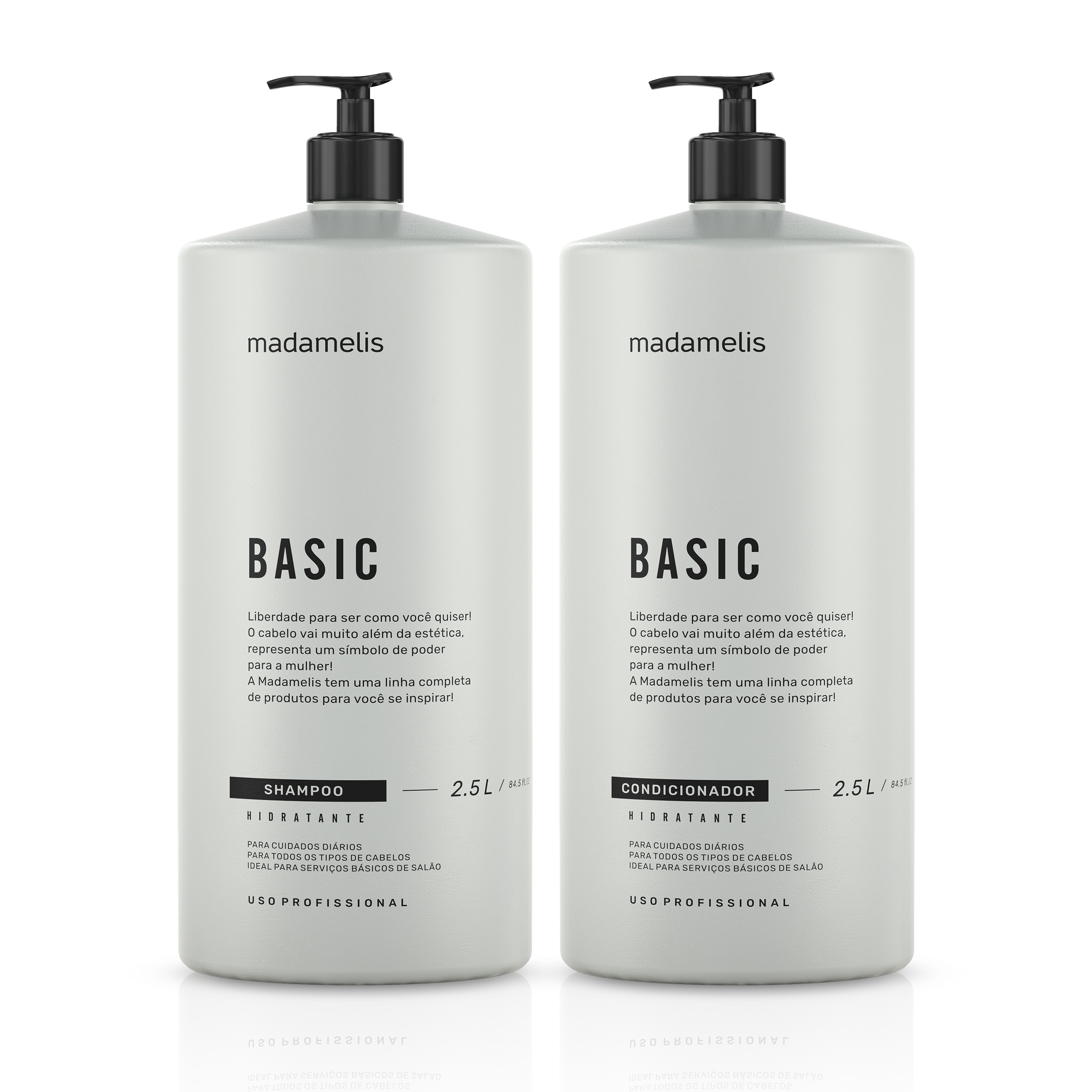 Atendendo à crescente demanda dos profissionais da beleza, a Madamelis apresenta sua linha para lavatórios, ideal para o uso diário. Composta por shampoo e condicionador de 2,5 litros cada, a linha Basic oferece qualidade reconhecida no mercado. Além da performance excepcional, destaca-se pela embalagem moderna e funcional, perfeita para enriquecer o visual do seu salão.